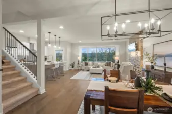 Breathtaking Snoqualmie Valley & Mount Baker Views! Inspired design, beautiful modern finishes featuring an open concept, soaring 9-ft ceilings & fabulous hardwood flooring. The Great room seamlessly blends with the dining room & modern kitchen design, boasting custom cabinetry, quartz countertops, stainless steel appliances, gas stovetop, oversized island & eating bar for entertaining. Grill on the covered deck all year! This thoughtful floor plan features 4 beds & 4 baths! The Primary bedroom has beautiful views, vaulted ceilings, walk in closet, & a 5- piece ensuite spa like bath, boasting a double vanity, soaking tub & sleek spacious tile shower. The laundry room is conveniently located on the upper level complete with a sink & ample storage. Generous family room on the lower-level including a bedroom or office, full bath, closet for extra storage & outdoor patios. 2 car garage with built in storage racks, entering on the main level for easy access to the main living. Enjoy multi-zone heat & A/C for ultimate comfort. Wired for generator. Explore Duvall's shops & restaurants. Just a stone's throw from riverside strolls, cycling along the Snoqualmie River Valley Trail, & a dog park conveniently located across the street. Award winning Riverview schools, MSFT Shuttle! Minutes to Redmond! Pre Inspected!