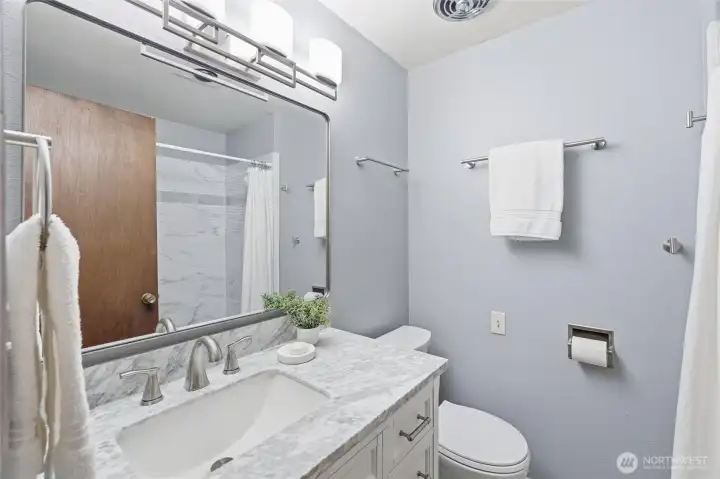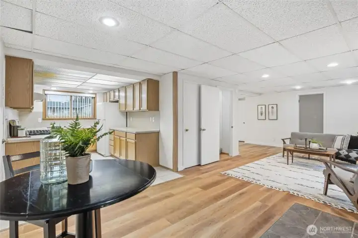 This Bellingham gem is ready to welcome you home! The main level offers 3 bedrooms and 2 bathrooms, filled with natural light. Enjoy a full chef’s kitchen with top-tier appliances and an original brick fireplace with access to the back deck—blending timeless charm with modern updates. The lower level features a second kitchen and bedroom with private entry, ideal for multigenerational living or rental potential. Situated on a large, level lot with fruit trees, deck access, and a storage shed. Recent upgrades include vinyl plank flooring, carpet, exterior paint, privacy fence, and an updated bathroom.