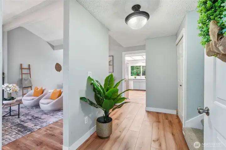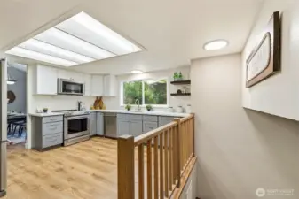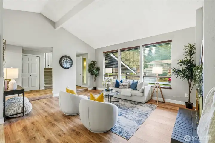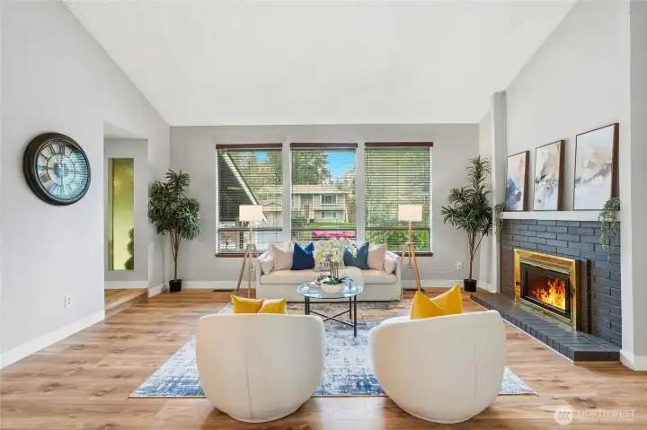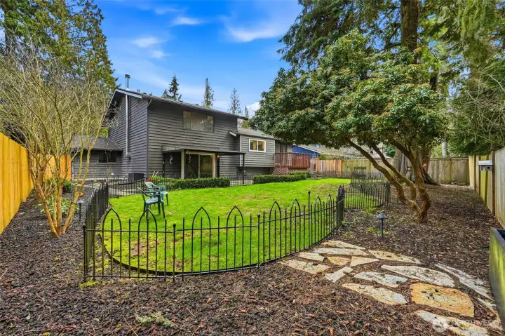 Welcome home to Ridgewood in Bothell! Vaulted ceilings and abundant natural light greet you in the formal living room with cozy fireplace, open dining area with slider to deck, perfect for morning coffee, and an efficient and beautiful kitchen with custom colored cabinetry, gleaming countertops, and newer appliances including refrigerator, range, microwave with hood, and dishwasher. Spacious lower level family room with slider to beautifully landscaped, sweeping backyard. Lower level bedroom and full bath provide excellent space for work from home or guest suite. Main bedroom upstairs with en suite and walk-in closet, plus two additional well-appointed bedrooms. Move in with confidence knowing the home features a newer roof (2022), water heater (2021), and furnace with air scrubber (2019). Charming details such as a covered front porch with views of lush front landscaping and stamped concrete patio in back elevate your outdoor enjoyment year-round. Two-car garage with built-in storage, sizable driveway, and street parking provide ample room for everyone. Located in an established neighborhood, walking distance to top-rated schools, and just minutes to amenities, this home offers the perfect combination of comfort, style, and convenience. Do not miss this opportunity to live, work, and play in Ridgewood!