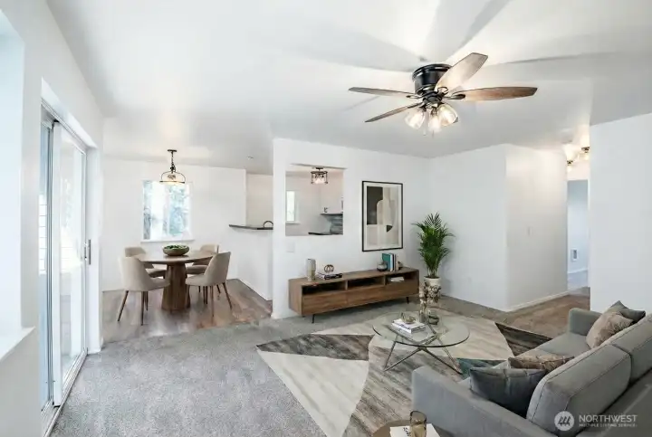 Amazing Turnkey 2-bedroom, 2 bath Condo in the heart of Downtown Issaquah! Walking distance to restaurants, shops, parks, trails, great school district and so much more! Walk into a spacious living space and dining area with a sliding door to your private balcony which looks out to an incredible serene greenbelt. Updated throughout with new paint, newer light fixtures, kitchen cabinets, countertops and appliances. Windows all around allow for an abundance of natural light and the ability to enjoy beautiful nature. Primary bedroom offers double closets and a full bath. Large second bedroom and full bath in hall. In unit washer and dryer with storage and a tandem 2 car garage. Low HOA dues and a great location! Commuters dream with easy access to freeways. Don't miss the opportunity to own in Issaquah.