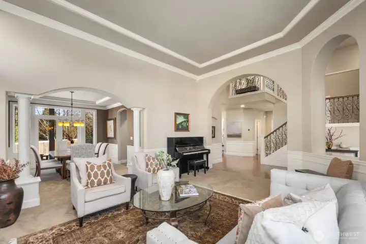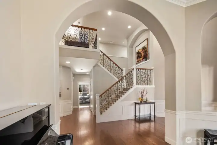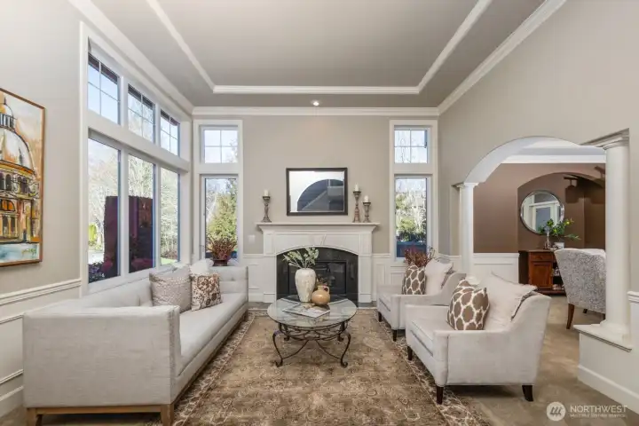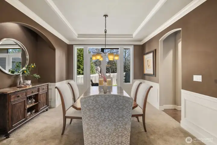 Tucked away at the end of a quiet cul-de-sac, this stunning Sammamish retreat offers rare privacy, tranquility and timeless elegance. Set on an oversized lot bordering a protected natural area, the home feels like a private sanctuary while still being moments from everything Sammamish has to offer. This lovely traditional-style home showcases quality millwork and crown molding throughout, anchored by an elegant formal living room with soaring ceilings and a cozy gas fireplace. Rich hardwood floors & dramatic architectural details create a warm yet refined atmosphere. Whether hosting gatherings or enjoying quiet mornings, this home adapts beautifully to every moment. Upstairs, a spacious primary suite provides a peaceful escape, while three additional bedrooms offer flexibility for guests, or creative space. A private main-level office with beautiful wainscoting provides the perfect retreat for work, virtual meetings, and can also easily function as a main-level bedroom. Step outside to a fully fenced backyard & expansive patio designed for relaxing evenings, outdoor dining & weekend enjoyment. Surrounded by nature & mature greenery, the setting offers exceptional privacy & serenity. An oversized garage with additional storage, a freshly painted exterior, and access to neighborhood parks and scenic walking trails complete this exceptional home. Ideally located near top-rated schools, shopping, dining, and commuter routes, this is refined Sammamish living at its best.