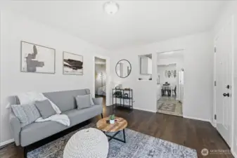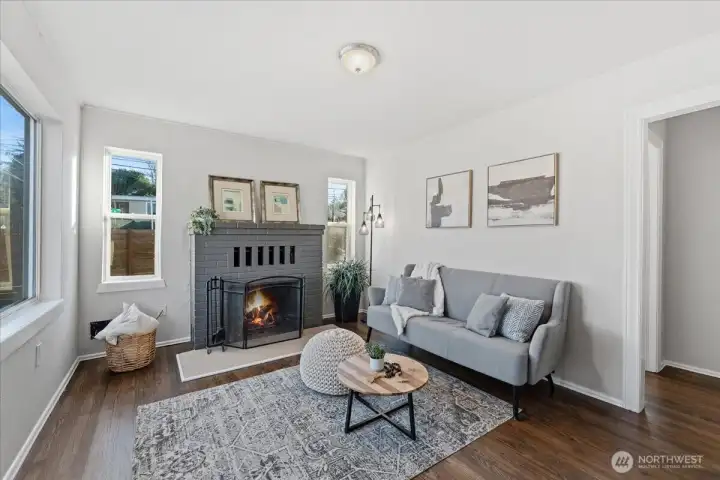 Adorable corner-lot home in Highland Park! Refinished hardwoods and fresh paint make this home truly shine. The inviting living room features a cozy wood-burning fireplace and large windows that flood the space with natural light, creating an easy, comfortable flow throughout. The sunny kitchen offers ample counter space and sits perfectly between the living and dining areas. Two comfortable bedrooms and a full bath complete the layout. A spacious laundry/mudroom provides direct access to the detached carport and storage. Outside, enjoy a fully fenced, private yard with room for gardening, play, or relaxing outdoors. Centrally located in West Seattle with easy access to Alki, Westcrest Dog Park, Westwood Village, and the airport—this charming home is as convenient as it is cute.