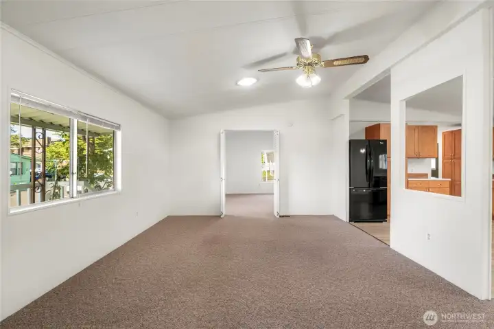 Well cared for 3 bedroom, 1.75 bath located on a desirable corner of a cul-de-sac in the wonderful 55+ community, Glenwood Mobile Estates. This lovely home is light and bright throughout with 1,296 SQ FT and includes a high efficiency furnace and heat pump, Double pane windows, composite roof, laminate flooring, and no pile carpeting throughout the home, The hot water tank is new as well as brand-new exterior paint. Bring your gardening vision to complete this home. Short distance to the clubhouse with all of the new amenities will give you activities every day. There are organized activities as well as a library, outdoor space and dog park. You will also be close to shopping and the YMCA and easy access to I-5 and Highway 9!