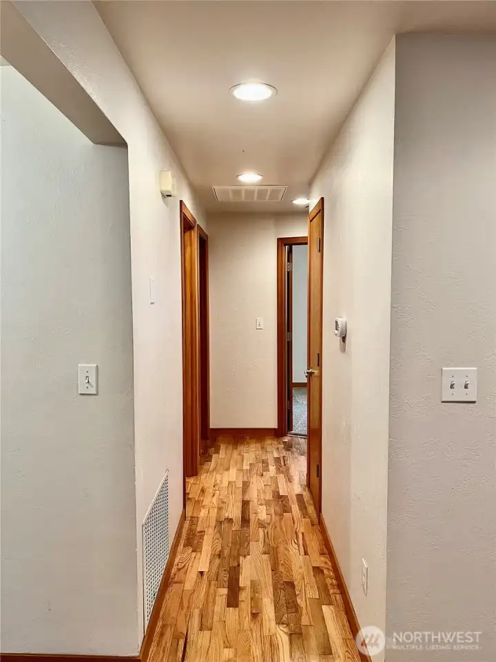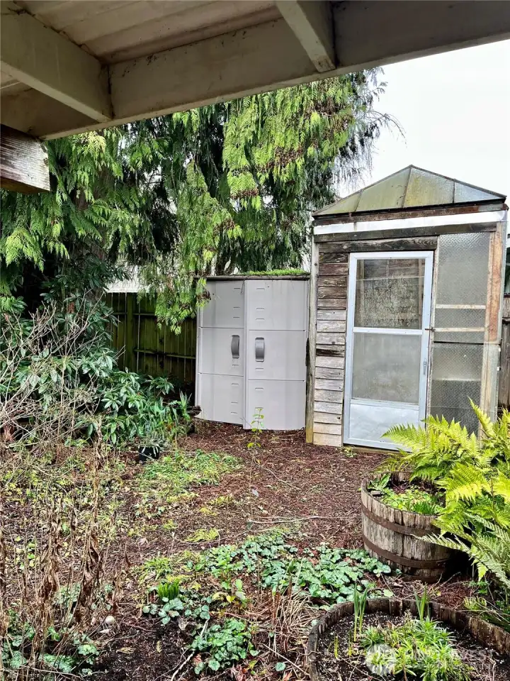 Lovely Move-In Ready single story home in quiet, well established neighborhood and in great commute location close to all conveniences! With thoughtful interior upgrades, the home features lovely natural light, gleaming original hardwood floors as well as carpet, ceramic tile, and easy care vinyl in the kitchen. The living room offers easy access thru sliding glass doors to the large covered patio area for all season entertaining & enjoyment. The comfortable & private primary bedroom suite features an impressive custom tiled walk-in shower plus large walk-in closet with built ins, access to outside covered patio, plus a ductless mini-split added for enhanced all season comfort. Additional amenities include spacious laundry/craft room/office area, an efficient kitchen w/dining area, and an easy flow layout with upgrades to accommodate senior/handicapped needs. Exterior features include small greenhouse and paved walkways thru planting areas and garden. Outdoor privacy is enhanced by lovingly curated perennials, fruit bearing plantings, and well manicured trees for shade and seasonal color. Simply a wonderful place to call home.
