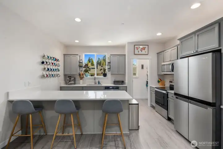 Built in 2023, this light-filled townhome in Normandy Park’s Sapphire community offers a private setting with open surroundings and a quiet residential feel. The spacious 2-bedroom, 2.5-bath layout features an open-concept main level with LVP flooring, a bright living area, and a kitchen with quartz countertops, stainless steel appliances, breakfast bar seating, and a walk-in pantry with generous storage. A covered deck extends living outdoors year-round. Upstairs are two private ensuite bedroom suites with ample closet space, including a walk-in closet. One bath has been upgraded with a custom walk-in shower replacing the original builder tub. Electrical outlets have also been added near toilets for bidet installation. Additional highlights include a 2-car garage plus driveway parking, a leveled backyard with lawn, laundry area, abundant guest parking within the community, and additional approved parking nearby. Ideally located just a short distance from Normandy Park’s scenic Cove waterfront area with shoreline trails and fresh coastal air, with convenient access to freeways, Sea-Tac Airport, parks, shopping, and dining, and approximately 30 minutes to Seattle, all while maintaining a peaceful residential setting. Includes remaining coverage under a transferable 6-year builder limited warranty (buyer to verify details).