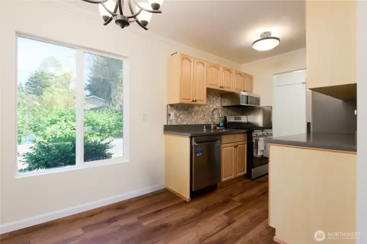 Resort-like condo with view of the garden and pool. Close to the Mukilteo ferry and the village with restaurants and shopping. Ground level condo with NO STAIRS! Washer/dryer in unit. Nearly everything has been remodeled. Kitchen features wood cabinets, new quartz counters, and brand-new stainless-steel appliances. Bathroom has a large bathtub with new tile surround and new vanity with quartz counters. New LVP flooring and new carpet in the bedroom. Patio off the living room to enjoy indoor/outdoor living. New water lines, new hot water heater, and new windows and doors. 1 Dedicated parking spot is right next to the front door. Well run hoa with no special assessments. Dues cover water, sewer, garbage, maintenance, and pool. Pre-inspected.