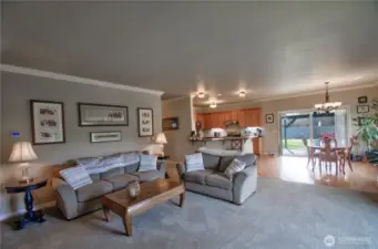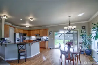 Welcome to this beautifully maintained Contemporary Ranch with Modern Craftsman influences, offering 2,314 sq ft of bright, airy living space on 0.36-acres with no HOA. Built in 2006, this 3 bed, 2 bath home blends comfort and timeless design. Natural light pours through large windows and sliding glass doors, highlighting real hardwood floors, beautiful crown molding, tray ceilings, and premium carpeting. The well designed kitchen features granite countertops, stainless appliances, generous cabinetry, and a raised breakfast bar perfect for entertaining. The oversized primary suite offers backyard views, a luxurious en-suite bath with soaking tub, dual vanity, and separate shower. Enjoy central A/C, a whole-home water softener, and a spacious laundry room for everyday convenience. Step outside to a covered patio and expansive, fully fenced backyard with room to garden, play, or simply relax. 2-car garage. Peaceful setting with space to breathe—yet close to everything Olympia has to offer.