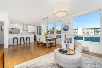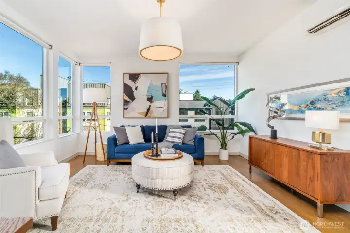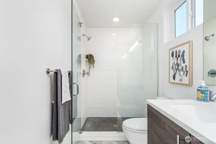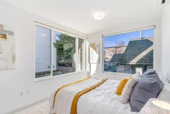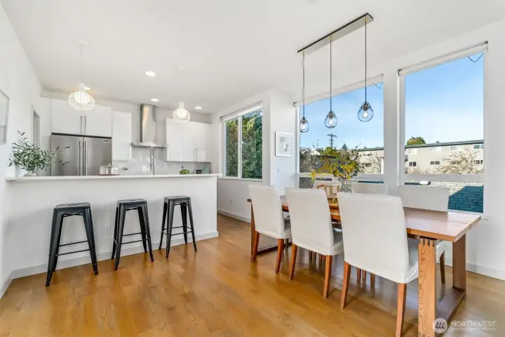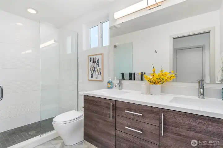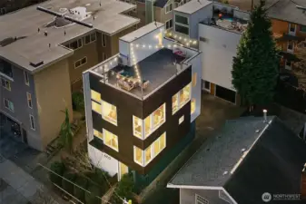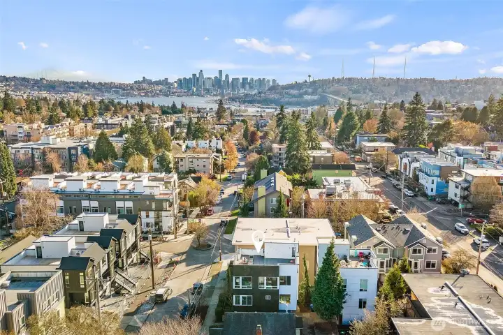 Set in the heart of Wallingford, this modern standalone townhouse pairs thoughtful design with an unbeatable urban location. The 3-bedroom, 2.25-bath floor plan is smartly laid out and enhanced by southeast exposure, with oversized windows that flood natural light into the main living spaces. The sleek kitchen features quartz countertops, a gas cooktop, and a generous walk-in pantry, ideal for both everyday living and entertaining. The spacious primary suite offers a custom Elfa closet system and an upgraded ensuite bath with a sleek floating vanity, soft under-cabinet lighting, and refined modern details. Upstairs, a showstopping 620 sq ft private rooftop deck elevates indoor-outdoor living, showcasing sweeping views of Mount Rainier, the Seattle skyline, the Space Needle, and Lake Union. Fresh interior paint and new carpet complete the picture, making this home truly move-in ready. Make your way out the front door and discover all that the neighborhood has to offer, from award-winning restaurants, schools, transit, and Seattle’s beautiful parks.