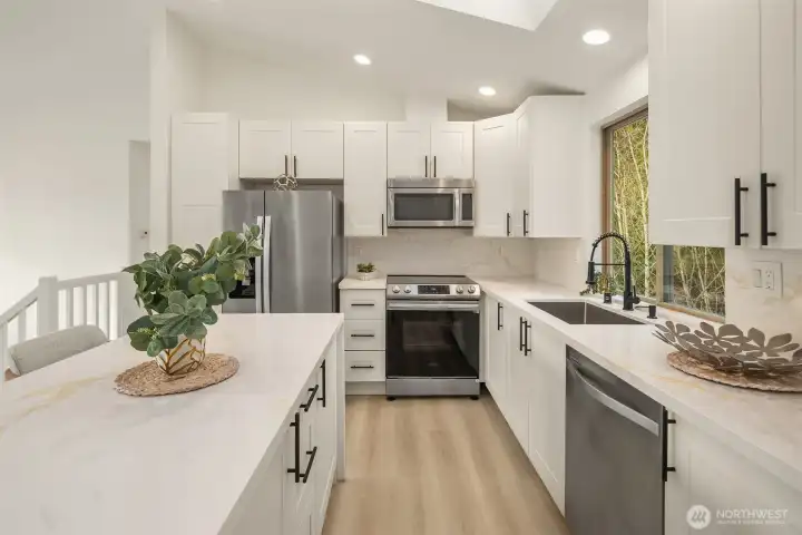 Stunning 4-bedroom home in a highly sought-after Bothell location, perfectly positioned on a desirable corner lot in a quiet cul-de-sac. Featuring vaulted ceilings, 3 beautifully remodeled bathrooms, quartz countertops, new appliances, fresh interior paint, and brand-new LVP flooring throughout. A spacious walk-in closet offers excellent storage. The furnace is only 2 years old, providing efficiency and peace of mind. Enjoy the fully fenced backyard—ideal for entertaining, pets, or relaxing outdoors. Conveniently located near parks, schools, shopping and much more!
