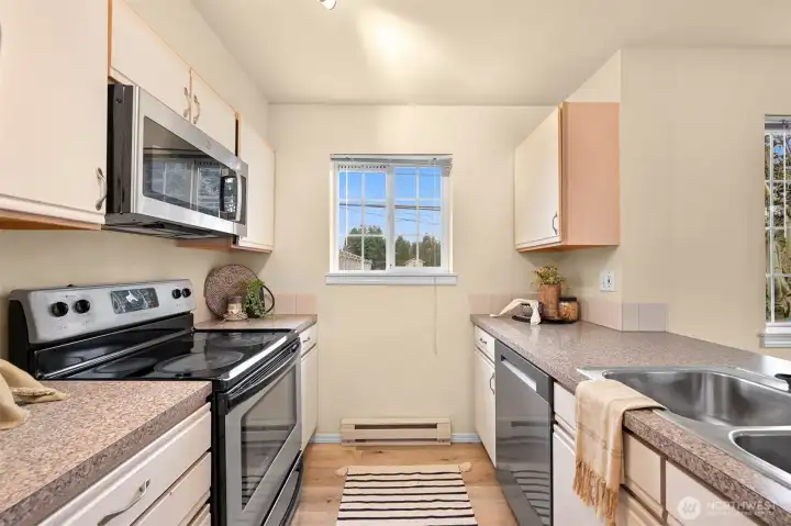 Discover comfort and convenience in this bright corner unit at Maple Glen Condos! This well-appointed 2-bedroom, 1.5-bath home features an open layout anchored by a cozy gas fireplace (gas included in HOA dues), easy-care finishes, and in-unit laundry for everyday ease. The primary suite includes a private half bath, while a spacious second bedroom and full bathroom are just down the hall. The light-filled galley kitchen offers everything you need with efficient design and great functionality. Step outside to your private balcony — the perfect spot for morning coffee or unwinding at the end of the day. Ideally located just minutes from Squalicum Park, shopping, restaurants, and transit, this home offers low-maintenance living in a highly convenient setting. A well-managed HOA covers key utilities including gas, water, sewer, and garbage — making this an excellent opportunity for first-time buyers, downsizers, or investors alike.