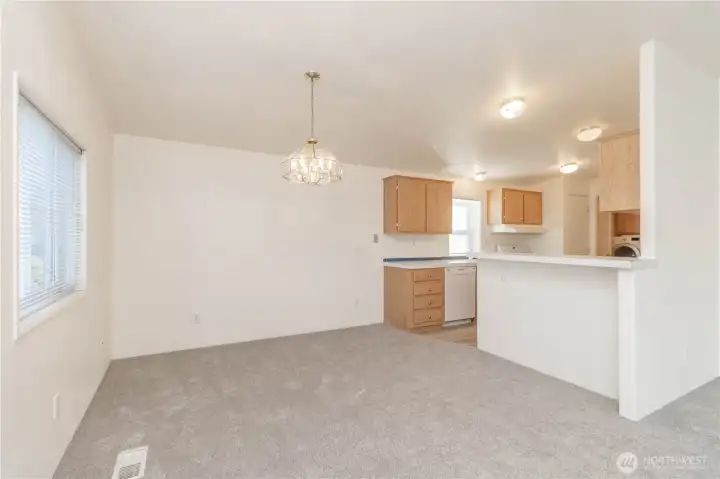 Welcome to Parkwood Lane, a gated 55+ community in the heart of Federal Way. This beautifully maintained 1998 home offers 1,120 sq ft of light-filled living with fresh interior paint, new carpet, new LVP flooring, A/C, and recent releveling for peace of mind. The vaulted living and dining areas feel open and airy, highlighted by bay windows and abundant natural light. The spacious kitchen features generous cabinet and counter space plus a window over the sink. A large utility room with storage and washer/dryer adds everyday convenience. Down the hall you’ll find a full guest bath, second bedroom, and a primary suite with walk-in closet and private bath. Covered carport with attached storage closet. Low-maintenance exterior with no yard work. Enjoy the community clubhouse, gazebo, BBQ area, and green space for gatherings and activities. Comfortable, easy living awaits!