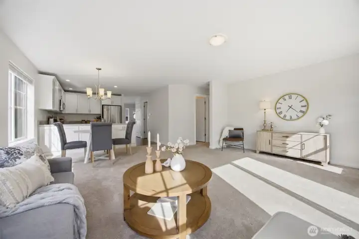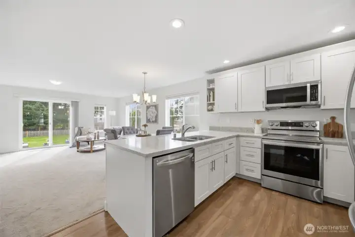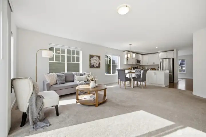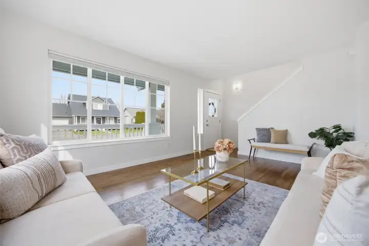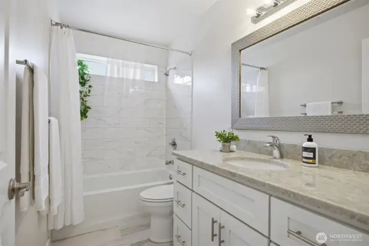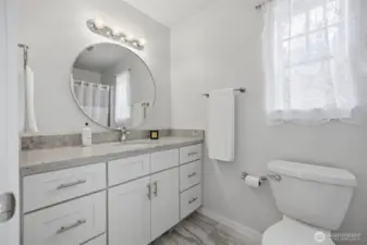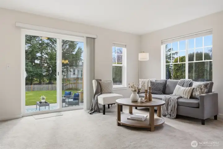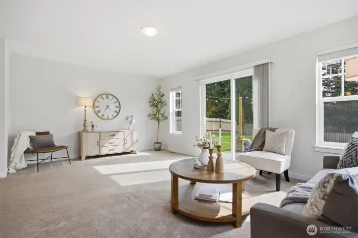 Charming home was completely remodeled in 2023 - everything new including roof, cabinetry, trim/paint, appliances. Tasteful and current design choices reflect a balance between traditional and modern. Lots of windows and a great layout with primary and two living areas on the main floor, three additional, large bedrooms and a huge bonus room upstairs. The kitchen is roomy and adjacent to the family room with a view of backyard vista. Really sweet patio and great, fenced yard that backs to a seasonal creek. Close to all schools, the ball fields, parks. Move in ready! Don't miss this one!
