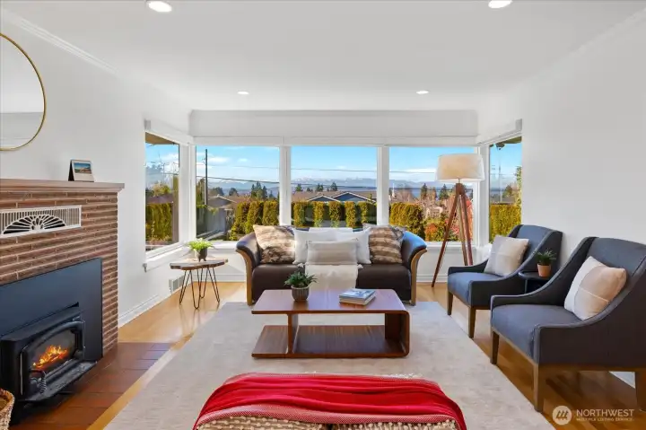 Set far off the street in the coveted Edmonds Bowl, this gorgeous, fully updated mid-century gem captures sweeping VIEWS of the Olympic Mountains and Puget Sound. Bathed in natural light, the open living spaces showcase expansive West facing picture windows that frame ever-changing sunsets, snow-capped peaks and ferries passing by. Thoughtfully renovated while honoring its mid-century charm, the home blends clean lines and warm wood tones with stylish, modern updates throughout. The beautifully renovated chef’s kitchen features high quality cabinetry, sleek surfaces, and seamless flow for everyday living and entertaining. With 3 bedrooms and 1.75 baths, the layout offers flexibility for guests, a home office, or creative space. Spacious lower-level features a family room and plenty of storage. The inviting outdoor areas in the back and on the side of the oversized lot provide room to expand, relax, garden, or gather with friends while soaking in the dreamy views. Easy parking options with long driveway with dedicated space to turn around + a one car garage with EV charger. Fabulous location just moments from vibrant downtown Edmonds, enjoy easy access to boutique shopping, acclaimed restaurants, cozy cafés, and the thriving arts scene. Stroll to the waterfront, marina, beaches, and ferry. Excellent public and private schools and local parks are blocks away. This is truly Pacific Northwest living at its finest. Plant your roots in this very special community.