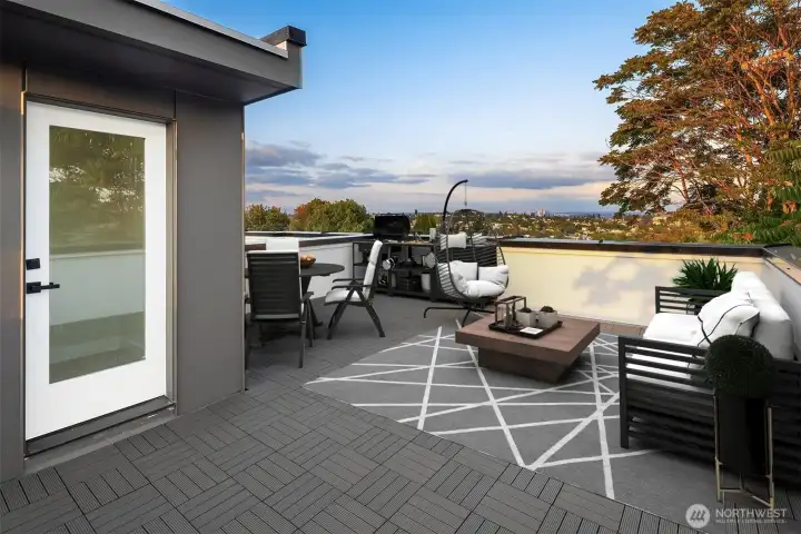 Modern living hits different when you’ve got city skylines & mountain peaks as your backdrop—best soaked in from a rooftop deck built for golden hours & late-night stargazing w/friends. Step inside to soaring ceilings, sleek finishes & hardwood floors that set a stylish tone. The chef’s kitchen w/quartz island & premium appliances is made for taco nights & dinner parties. The sun-drenched owner’s suite delivers spa-day energy w/expansive windows & luxe finishes. Zoned heating + A/C keep comfort dialed year-round. Oversized EV-ready garage offers parking + storage for bikes, boards & adventure gear. Heading out? North Beacon's restaurants, coffee spots & the Light Rail station are just a short stroll away—connected to the best of Seattle.