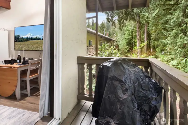 Calling all powder hounds, thru-hikers, and river runners! This isn't just a condo; it's your tactical fully furnished turn-key headquarters for Pacific Northwest adventure. Situated in the charming Snowline Inn complex in Glacier, this cute lofted condo is a purposeful retreat designed for those who live for the outdoors. After a day of shredding legendary lines at Mt Baker Ski Area-only 19 minutes door to lift- you can retreat to your sanctuary and thaw out in the warmth of your own place. The deck has views of the beautiful forest and towering cedars. There is nearby access to the river for river sports with Class III-IV rapids, fishing, meditation, etc. The Mt Baker /North Cascades region is a true enthusiast's playground. Walk to nearby Chair 9 for dinner or beverages, just a short stroll away. Short bike or drive to the town of Glacier complete with a mercantile, snowboard/ski shop, bakery/cafe, and other local attractions. The unit features an updated kitchen and appliances, updated full bathroom, and vaulted ceilings in the living room/dining area. The oversized loft features a large bedroom plus an equal sized lounge/office area. The complex features a game room, fitness room, and ski tuning area. High speed internet. Beyond the inn, the North Cascades beckon with world-class trekking on the Chain Lakes Loop, sunset vistas at Artist Point, and when the snow melts, endless mountain biking trails await. Your Cascadia dream starts here on the 542!