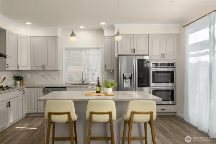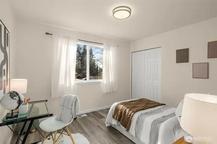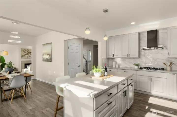 Stunning south-facing home in a quiet Mountlake Terrace neighborhood, offering exceptional natural light, excellent condition, and a highly functional layout. Built in 2002 with 2,214 sq ft, this 4 bed/2.5 bath residence features an open main level where the living, dining, and kitchen spaces connect seamlessly—while a thoughtful half-wall creates ideal separation between entertaining and everyday living. The kitchen is anchored by a large island, perfect for gathering, prep, and casual dining. The entry-level also includes a versatile studio-style room, ideal for a home office, reading room, or creative space. Upstairs, retreat to an oversized primary suite with a walk-in closet and en-suite bath featuring dual sinks. A warm and inviting entertainment/bonus room offers the perfect space for relaxing, gaming, or a cozy second living area. Enjoy the practicality of a true 2-car attached garage and a generous lot for everyday comfort. Easy access to I-5 and nearby transit options, ideal for commuters. A rare combination of light, space, condition, and livability in a prime location.
