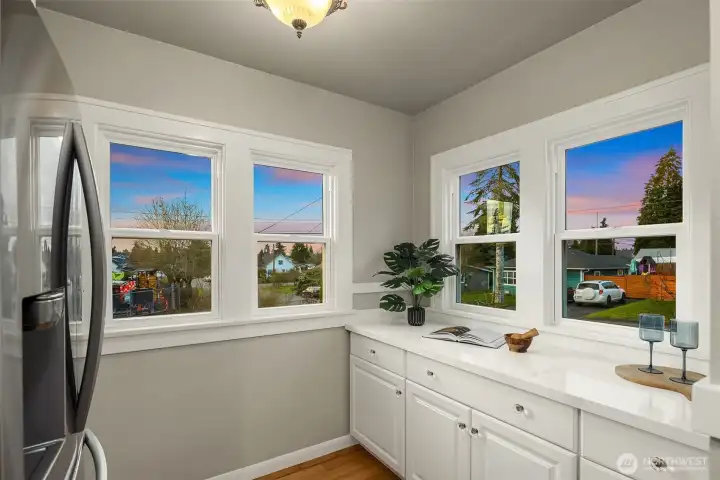 North Everett charm with thoughtful updates throughout. Situated on a desirable corner lot, this home offers the perfect blend of character and convenience—just a short walk to downtown Everett and minutes from the vibrant new waterfront district. Enjoy easy main-level living with all-new carpet and LVP flooring, fresh interior paint, updated doors and trim, and a beautifully remodeled kitchen featuring stainless steel appliances, quartz countertops, and a cozy breakfast nook. Major exterior improvements include a newer roof, updated siding, and vinyl windows, offering peace of mind for years to come. Truly turnkey and move-in ready, this home captures the very best of Everett living while providing quick access to I-5 for an effortless commute.
