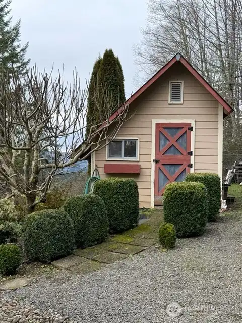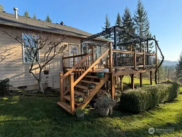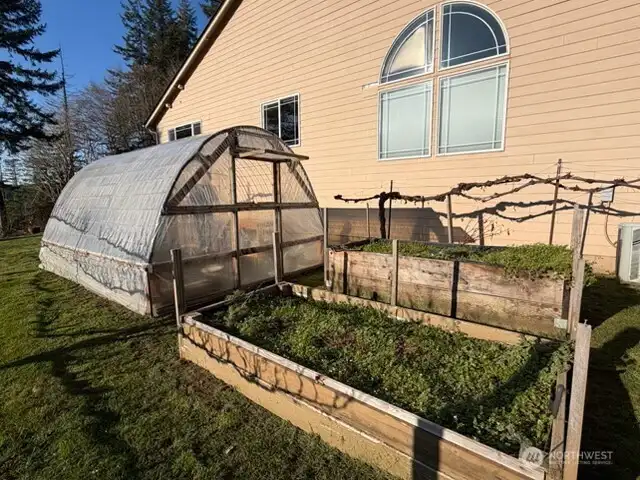 Peaceful country living awaits on this private 2.5-acre retreat at the end of a quiet road—just minutes to town and I-5. This elegant, custom-built, one-level home offers wheelchair accessibility and an open-concept design with vaulted ceilings, magnificent windows, and spectacular views. Inside you’ll find Brazilian cherry hardwood floors, natural cherry wood cabinetry, granite countertops, custom slate backsplash, Italian tile flooring, stainless steel appliances, a built-in 52” TV, and a cozy gas fireplace in the great room. The luxurious primary suite features a jetted tub, steam shower, and spacious walk-in closet. Two additional large bedrooms plus a den/office provide flexible living space. Step outside to a new raised deck overlooking your own gardening paradise—14 blueberry bushes, huckleberries, mature grapevines (red and white), multiple apple, pear, and plum trees, plus raised beds ready to grow. A greenhouse, large powered shed with loft and water, potting shed with marble counters, chicken coop, two 275-gallon water tanks, 600-watt solar panels, attic solar fans, and a newer roof (1.5 years old) add function and sustainability. Additional highlights include abundant under-home storage (formerly used as a winery), landscaped grounds, and all furniture included—making this an ideal full-time residence, retreat, or potential Airbnb opportunity. Wake up to breathtaking views—this home truly has it all.