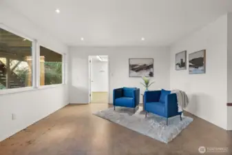 Light-filled Mid-Century Modern in the heart of Burien! This home offers spacious, flexible living with endless possibilities. The main level flows seamlessly to an expansive deck where you can take in peaceful Sound views and entertain with ease. Downstairs, the oversized great room provides incredible versatility—media room, home office, guest suite, or potential ADU conversion. 2 bedrooms/1 bathroom upstairs and 2 bedrooms/1 bathroom downstairs, make this a versatile multi-generation home as well. The serene backyard features multiple areas to unwind, garden, and gather. Just minutes to Old Burien’s charming shops and dining, light rail access, and Sea-Tac Airport. Comfort, convenience, and character all come together in this established neighborhood gem.