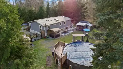 Experience refined country living on 11 private acres where comfort, lifestyle, and future potential come together beautifully. This 3-bedroom, 2-bath home welcomes you with an updated kitchen designed for both everyday living and effortless entertaining, while expansive outdoor spaces invite you to unwind, featuring an above-ground pool for summer enjoyment, a charming chicken coop and run, and gated, fenced areas ideal for pets, play, or hobby farming. Thoughtfully equipped with an additional power meter, three septic cleanouts, and a secondary driveway offering RV parking or future building potential, this property provides flexibility rarely found. With room to grow, expand, and create your own vision, this exceptional estate offers a rare balance of privacy, versatility, and elevated Northwest living, a truly special opportunity for those seeking space without compromise.