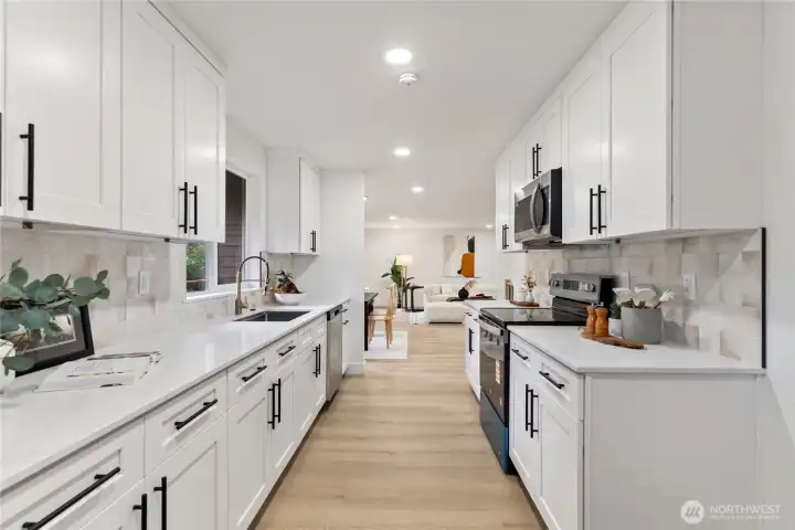 Must-see home in the heart of Marysville, perfectly situated at the end of a quiet dead-end street, offering privacy and convenience with no HOA. This spacious residence features 3 bedrooms and 2 bathrooms. Primary bedroom on the main level, with an additional 2 bedrooms and a full bathroom downstairs—ideal for multigenerational living or guests. The open-concept floor plan creates an inviting atmosphere, with an oversized living room that flows seamlessly into the dining area. The galley-style kitchen is thoughtfully designed with custom cabinetry, quartz countertops, stainless steel appliances, and a striking custom backsplash, perfect for both everyday meals and entertaining. The primary suite features a full bathroom with custom tile work and an elegant vanity, providing a private retreat. Outside, enjoy a huge 12x24 deck overlooking serene Quilceda Creek, ideal for relaxing, entertaining, or taking in nature’s beauty. Additional highlights include a 2-car garage plus a carport for RV or boat parking, a new roof, and a secluded location that combines privacy with accessibility. This exceptional Marysville home blends comfort, style, and functionality—truly a must-see.