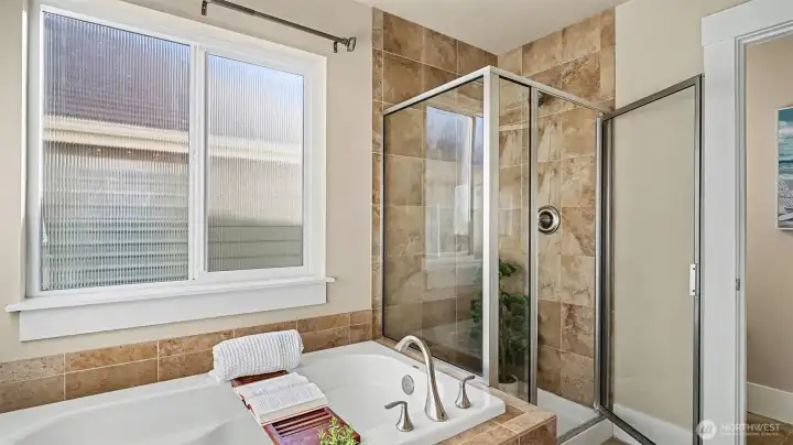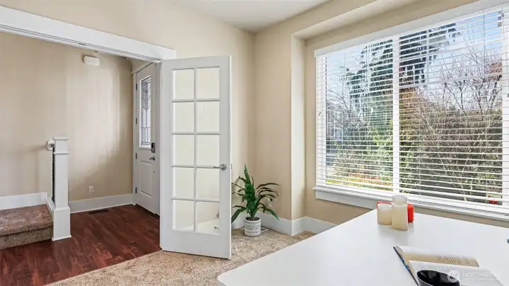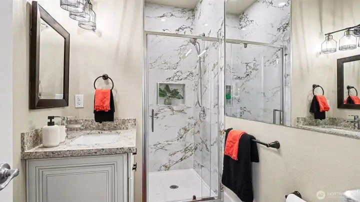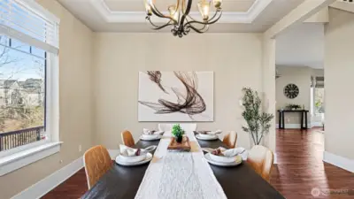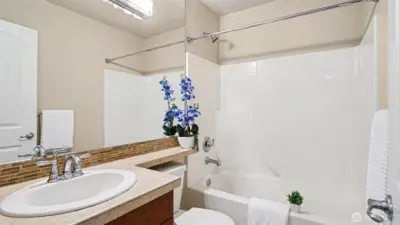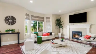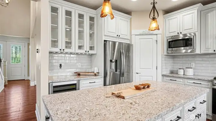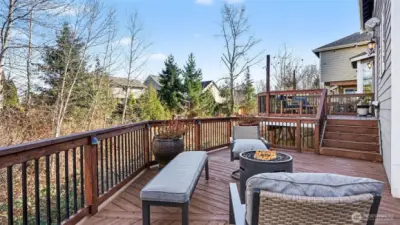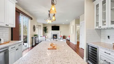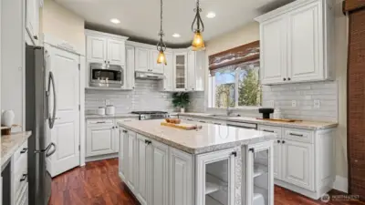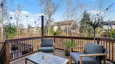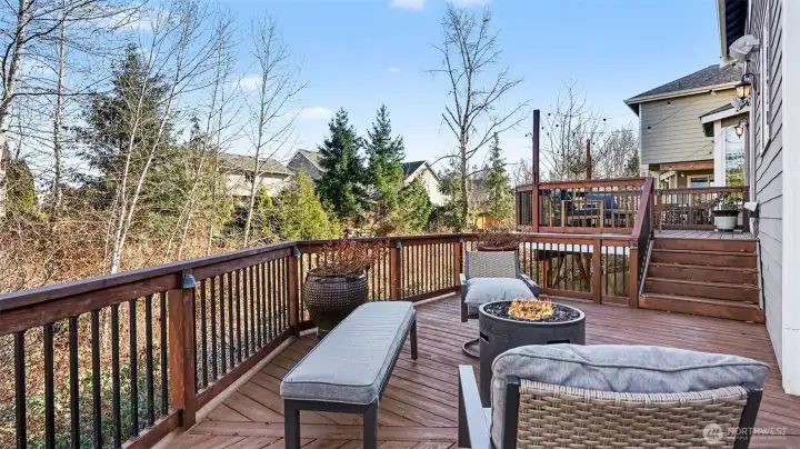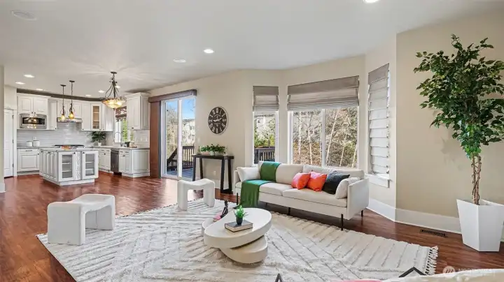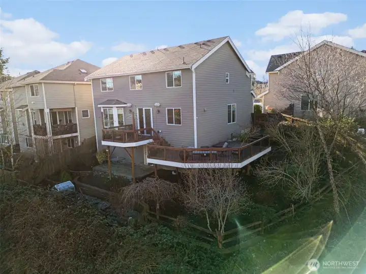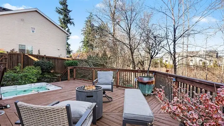 Nestled in the highly desired Renton Highlands, this beautifully updated home sits on a private corner lot backing to a serene greenbelt, offering rare privacy in a quiet neighborhood near parks, transit, groceries, restaurants, and a private community park maintained by the HOA. Designed for modern living and entertaining, the brand-new $50K open-concept kitchen features quartz countertops, LVP flooring, stainless steel appliances, and a wine fridge. The spacious family room with gas fireplace flows to a freshly painted 500 sq ft multi-level entertainer’s deck with built-in speakers and hot tub. The main floor includes a dedicated office, formal dining area, and a newly added shower bath, ideal for guests. Upstairs offers 5 bedrooms, including a generous primary suite. Highlights include new flooring, brand-new carpet, fresh interior paint, new washer and dryer, and new A/C. Enjoy low-maintenance living with turf in the front yard, easy-care backyard, and abundant storage, including a large crawlspace and storage under the deck. The 2-car garage adds convenience. A true Renton Highlands gem!