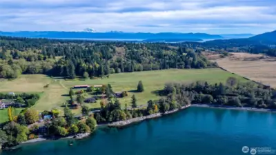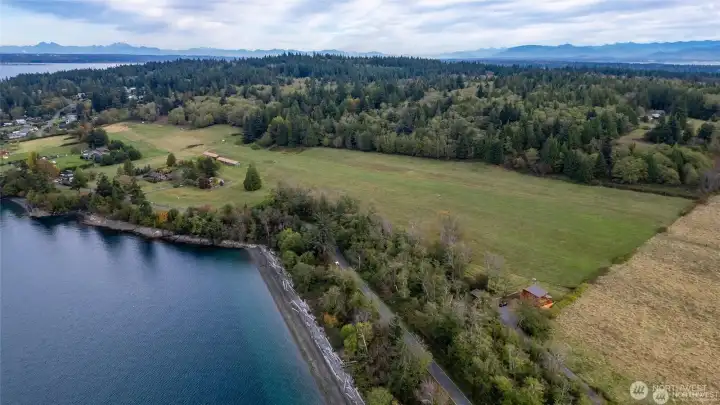 A rare westside waterfront estate opportunity—10+ acres of pristine island land with 700’ of private shoreline and panoramic views of the Strait of Georgia, the outer San Juan Islands, and the Canadian mountains beyond. The property includes a charming two-bedroom cottage and shop, offering an immediate retreat while envisioning your future legacy estate. Property provides flexibility for expansion, equestrian or agricultural use, or creation of a grand coastal compound. Excellent owner-financing available.