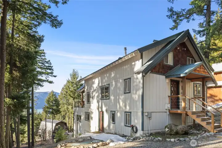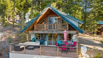 Enjoy the best of the Pacific Northwest from this fully furnished cabin with gorgeous lake and mountain views. Boasting three levels with a large deck, there's ample room for entertaining indoors and out. Spacious main level living with classic cabin touches including a cozy free-standing stove, exposed beams, and wood-wrapped windows. Over-sized primary bedroom with vaulted wood-wrapped ceiling, private balcony, and sitting area. Expansive daylight basement with rec room, bedroom, & bath. Surrounded by soaring evergreens, this lot has a firepit and woodshed with additional parking for a boat/snowmobile trailer plus ATV garage. Located in the desirable Pine Loch Sun community, Central Washington's outdoor recreation mecca. Access miles of trails from your doorstep for hiking, biking, and snowmobiling. Spend your summer fishing, swimming, and boating on the nearby lake with your winter skiing and snowmobiling in the mountains. The Pineloch Sun Lodge located on the shores of Lake Cle Elum features a game room, kitchen, seasonal outdoor pool, and fireside seating. Successfully used as a part-time vacation rental for the last 3 years, averaging 20-30k short term rental income per year, helps offset operating costs nicely. Incredible opportunity in a move in ready weekend retreat.