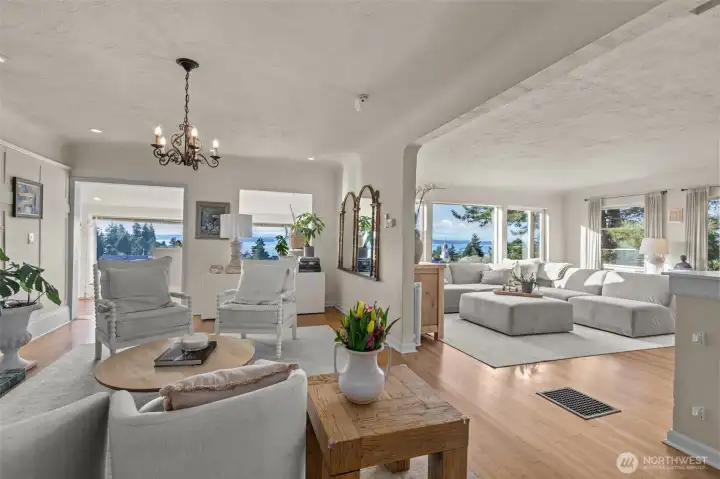 The Sunset Villa: Perched on one of West Seattle’s most coveted hillside settings this captivating home offers sweeping, unobstructed views of Puget Sound, the Olympic Mountains, & unforgettable sunsets from every room. From sunrise to golden-hour sunsets the rare, breathtaking view remains endlessly mesmerizing. The Spanish-style home features a reverse floor plan that elevates the main living spaces to fully embrace the scenery. Large windows frame the view & invite sunlight in. Classic arched doorways & Spanish architectural details provide warmth & soul. The primary suite offers a peaceful retreat with a gas fireplace, ensuite bath, & walk-in closet. Additional bedrooms provide flexibility for guests, work-from-home, gym, or creative pursuits. Outside, the generous, private yard is an extension of the home: ideal for dining al fresco, gardening, soaking in the hot tub, or simply unwinding as the sky puts on a show. A rare easement off 44th Ave SW provides easier access to the property. Located just minutes from West Seattle’s parks, beaches, & neighborhood favorites!