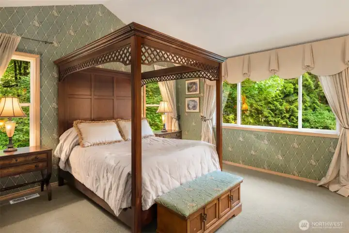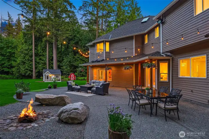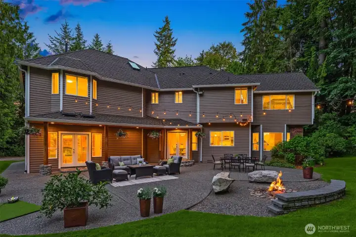 Dramatically poised down a long wooded drive in esteemed Sutton Place, this stately 2-story blends timeless elegance & PNW grandeur with the comforts of a forever home. Luxury living on an colossal scale with 4,562sf sprawled out on a secluded, sun-drenched 1.4 acre estate surrounded by evergreens & state forest. Opulent architecture with spacious rooms & exquisite curated finishes. Soaring marble foyer with cascading spindle staircase & stunning chandelier opens to office with built-ins, vaulted living room with marble fireplace & formal dining with tray ceilings, wainscoting & bay window. Extravagant chef's kitchen with high-end appliances, island bar & full-size eating space opens to family room with coffered ceiling, 2nd staircase, den/study & sunken parlor with towering floor-to-ceiling river rock fireplace framed by built-in bookcases. Regal primary suite with cathedral ceilings & lavish new 5-piece designer bath. Tucked away loft bonus room with skylights & dormers. Private backyard oasis with extended patio, custom lighting, fire pit & massive level lawn. 3-car dream garage with 4-post hydraulic lift. Moments from world-class Woodinville amenities & top-tier Northshore Schools. 1st time on market!