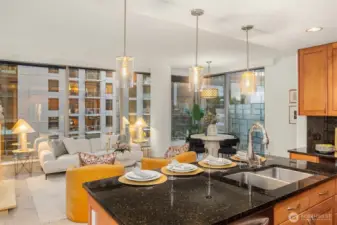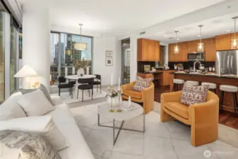 Embrace modern elegance on the 8th floor of Washington Square Tower I, where floor-to-ceiling windows showcase dramatic city views and thoughtfully designed living spaces. This 2-bedroom, 2-bath residence features 10-foot ceilings, all-new interior paint, central A/C, and a gas fireplace, creating a light-filled and comfortable home in the heart of Downtown Bellevue. The kitchen offers gas cooking, stainless steel appliances, cherry cabinetry, granite countertops, and an island, opening seamlessly to the living and dining areas for effortless entertaining. The covered private balcony — accessible from both the living room and primary suite — extends the living space outdoors. The spa-inspired primary bath includes a soaking tub and frameless glass shower. This home includes TWO secure garage parking spaces and access to Washington Square’s premier amenities, including concierge service, fitness center, spa, resident lounge, meeting rooms, guest parking, and EV charging. Ideally located just steps from Bellevue Square, Lincoln Square, Downtown Park, restaurants, Amazon, Microsoft, Nintendo, Meta, Salesforce, Bellevue Transit Center and Future Light Rail - this residence offers the best of Downtown Bellevue luxury condominium living.