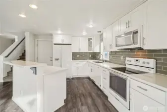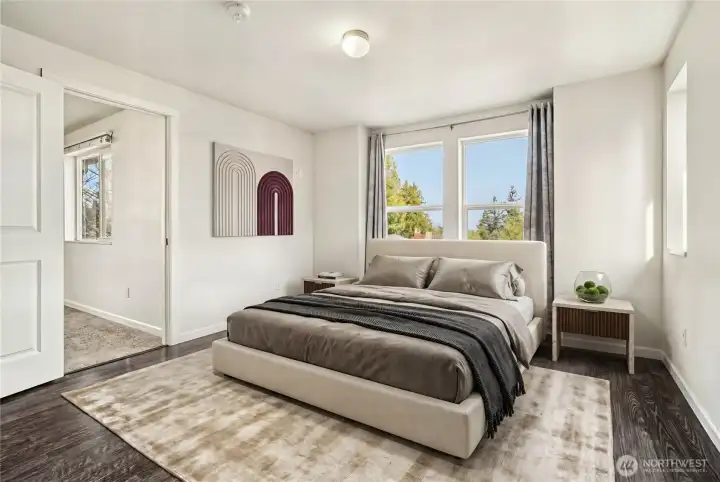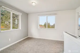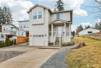 Welcome to this inviting home tucked away on a quiet dead-end street with serene partial views of Lake Washington. The open floorplan on the main level creates an easy flow for everyday living and entertaining, with abundant natural light enhancing the spacious feel. A sliding door leads to a private backyard retreat complete with a patio—ideal for outdoor dining, relaxing, or hosting gatherings. The sleek kitchen features white appliances, a center island for prep and seating, and storage. Upstairs, the primary suite offers a comfortable escape with its own bathroom. Two additional bedrooms, a full bath, and a versatile loft or office space provide flexibility for remote work or hobbies. Enjoy plenty of off-street parking. Move-in ready, welcome home!