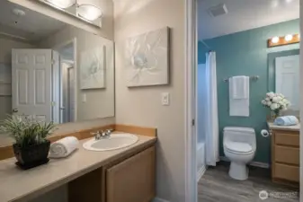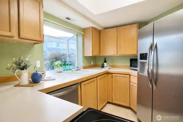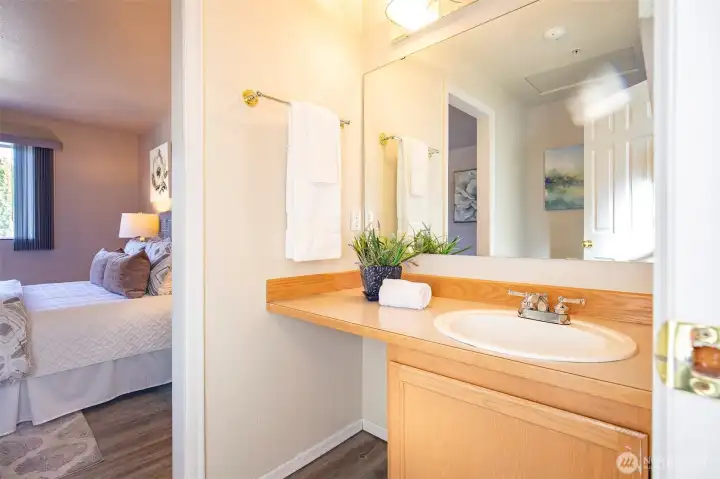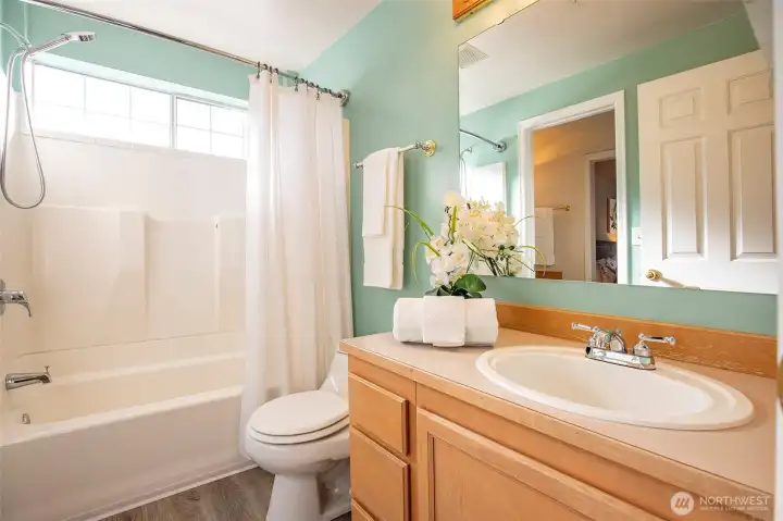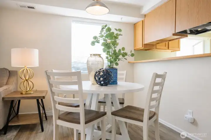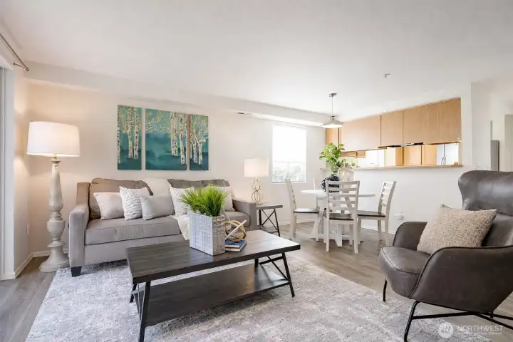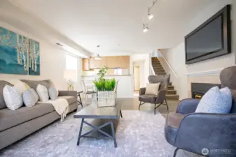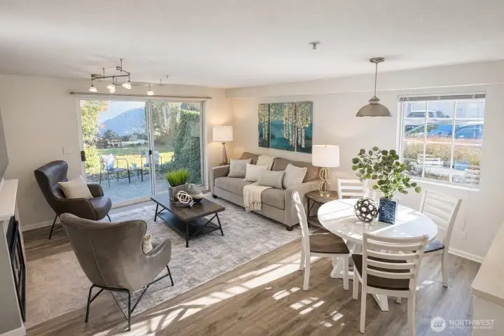 Welcome to Park Place Townhomes in the heart of downtown North Bend, where magnificent mountain views greet you right from your own home. This light-filled 2-story end-unit offers privacy, abundant natural light, and stunning views of Mount Si. The spacious Living room features a cozy gas fireplace and seamless access to a private patio—perfect for morning coffee or summer BBQs. The Kitchen is equipped with stainless steel appliances and generous cabinet storage, creating both functionality and style. A convenient half bath and full-size laundry are located on the main level. Upstairs there are 2 spacious bedrooms, including Primary with breathtaking Mount Si views, a large closet, and direct access to the full bath with dual sinks. Updated luxury vinyl plank flooring throughout adds a clean, modern touch. Enjoy the ease of a 1-car garage plus driveway parking. Ideally located just minutes from shopping, restaurants, local bars, trails, and with Si View Park right next door. Quick access to I-90 makes commuting simple. Welcome home!