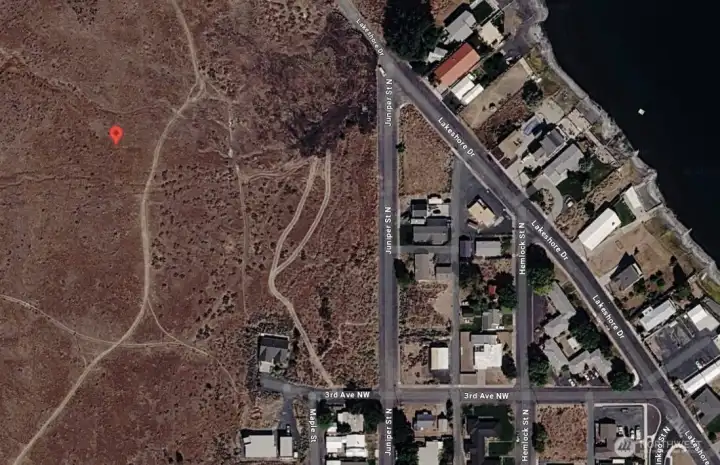Enjoy rare privacy and sweeping elevated views from this exceptional 5,971 sq ft double lot (Lots 4 & 5, Block 8 | 0.1371 acres | Land Use - SFR) overlooking Soap Lake just off Lakeshore Drive. Positioned on the hillside just a short walk to the shoreline, this parcel sits above inland properties — maximizing lake outlook and natural light. Neighboring parcels designated non-buildable per city code help preserve open space and protect your sightlines long-term. The double-lot configuration provides greater design flexibility for a single-family residence, allowing room to thoughtfully position your home, outdoor living areas, and parking within a quiet setting. The sloped but buildable terrain is well suited for a custom home, recreational retreat, or investment opportunity in sunny Eastern Washington. Water, sewer, and electricity are available for extension from Juniper St N. Buyer to verify all information and is responsible for utility extensions, permitting, and connection to city services through Soap Lake Public Works and Grant County PUD. Located in a peaceful community known for its mineral-rich lake, with convenient access to recreation, local amenities, and nearby highways. Bring your builder and explore the development potential — friendly co-listing brokers available to discuss site details, site development, and preferred builder options.
