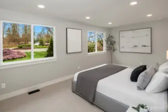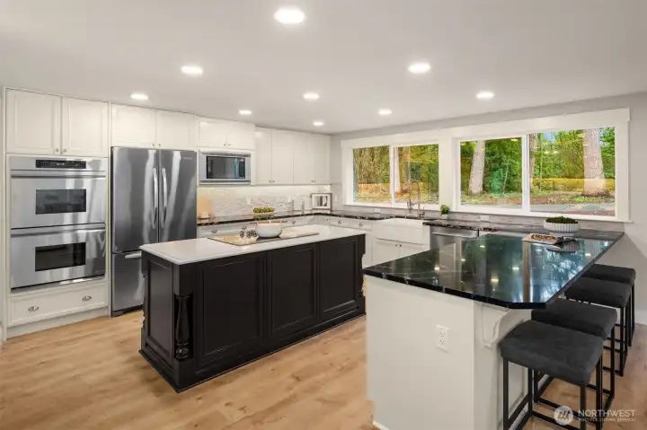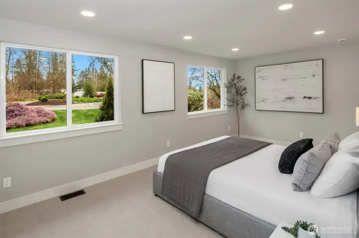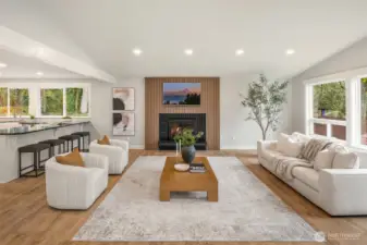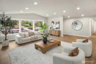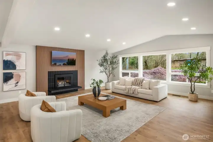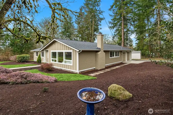 Primely situated on 2.48 private acres in the East Renton Highlands and within the Issaquah School District, this reimagined farmhouse rambler offers a rare combination of privacy, scale, and modern refinement. A long, tree-lined private drive creates a memorable approach, gradually revealing the residence set well off the road amid open pasture, mature evergreens, and natural surroundings that provide exceptional seclusion and usable land. The setting offers both presence and flexibility—equally suited for quiet enjoyment and outdoor expansion, rarely found this close to Eastside conveniences. Vaulted ceilings and expansive windows introduce abundant natural light across the open-concept interior, anchored by a true chef’s kitchen appointed with stainless steel appliances, custom cabinetry, and refined finishes. Engineered oak hardwood flooring extends throughout, complemented by curated designer fixtures and thoughtfully renovated bathrooms. A modern farmhouse residence defined by land, privacy, and elevated everyday living.