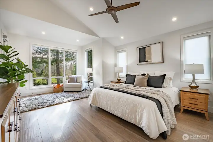 Located in the exclusive Clubhouse Point neighborhood—just 14 Northwest Contemporary fairway homes—this beautifully updated single-level residence offers 2,905 sq ft of refined, zero-step living in the heart of Semiahmoo. Set along the 1st fairway and just a two-minute stroll to the Country Club, Great Blue Heron Grill, tennis, and pool, the lifestyle here feels effortless and elevated. This is quiet luxury at its best. High-end finishes, thoughtful design, and a sense of calm that greets you the moment you arrive. The chef’s kitchen is both stunning and functional, featuring high-end appliances, Pental quartz countertops, under-cabinet lighting, and a statement 5x9 island with seating for five plus. A spacious 7x9 butler’s pantry keeps everything organized, while the open layout connects seamlessly to the great room and dining area. From the kitchen sink, you take in the living spaces and soft golf course views. The primary suite is truly exceptional—spacious with sitting area overlooking the fairway and designed as a private retreat. The spa-worthy ensuite offers a soaking tub, walk-in shower, and an impressive California Closet system that feels custom-tailored to the home. With one guest bedroom in the main home, a flexible den/office, and a detached casita with ensuite connected by a covered walkway, the layout offers comfort and privacy for everyone. Gated security, lock-and-leave ease, and timeless, refined style—this is the kind of home you've been waiting for.