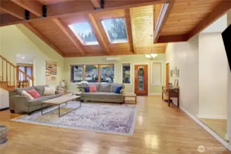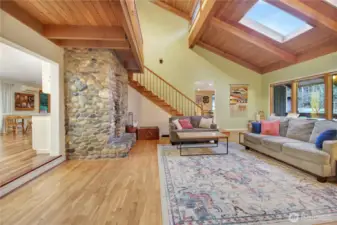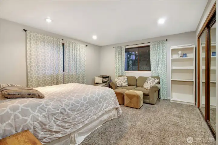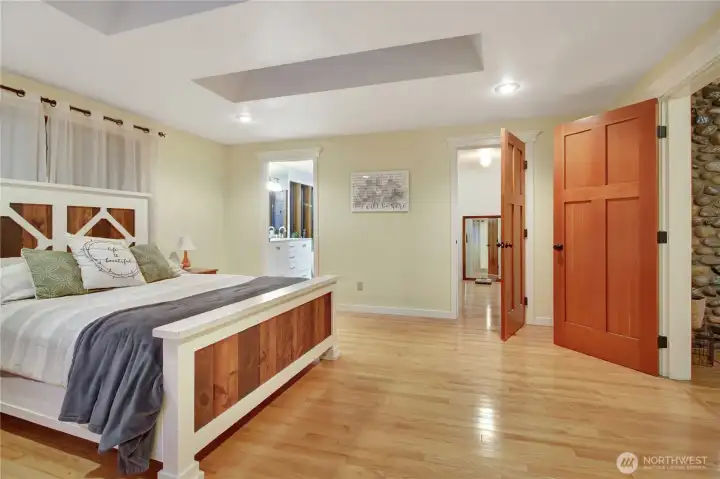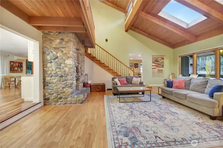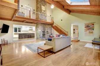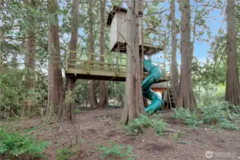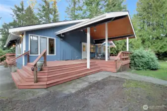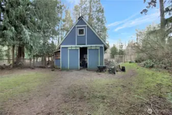 {A TON OF SQUARE FOOTAGE FOR THE PRICE} Northwest contemporary home on shy 5 acre lot! Outside, over 1100 sq. ft. composite deck with corner built in firepit and partially covered for rainy day barbeques! Circular driveway, detached 4 car garage/shop, a 2 stall barn with loft and a treehouse! Inside, huge soaring ceilings in the great room and a stone-floor to ceiling wood burning fireplace! Skylights add an abundance of natural light and tongue and groove ceilings. Remodeled kitchen boasts a huge island with granite slab c/t's, subway tile backsplash, farm sink, pot filler over gas cooktop, walk in pantry and SS appliances. Dining room with room for a farm-sized table! Formal living room or office. . . great mud/utility room off covered portion of deck. Two very large bedrooms and a full bath on main and walkway above to primary suite overlooks the great room below. Primary suite boasts a walk-in closet and attractively updated bath w/ freestanding soaking tub and separate shower. Storage galore on the main and upper level! Downstairs a 2 BR, 3/4 BTH fully contained apartment with woodstove has its own entrance and parking! Towering evergreens and fenced and cross-fenced (behind barn) for your animals!!! Great location, Lakewood School District and close to Wenberg County Park for summertime fun!!!