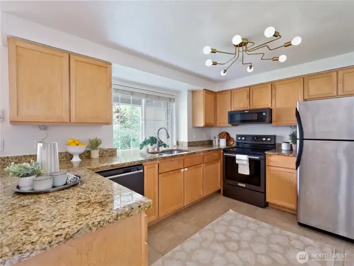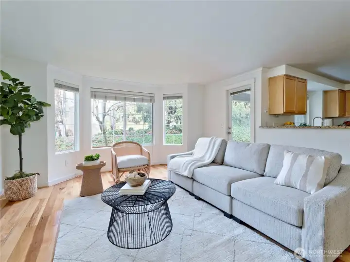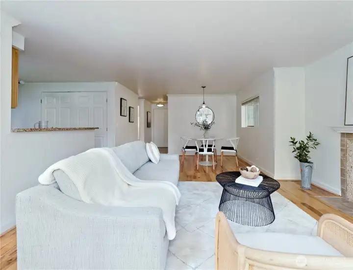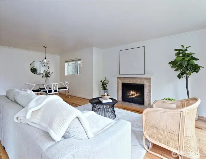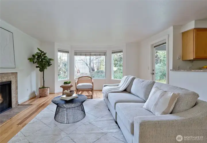 Welcome home to this beautifully maintained ground-floor end-unit condo in the sought-after Esplanade community in Juanita! This spacious one-level 2-bedroom, 1-bath home offers comfort, convenience, and excellent value in a prime Kirkland location, ideal for both homeowners and investors. Large windows and a private patio overlook a peaceful, grassy hedged area, creating a bright and inviting atmosphere throughout. Inside, you’ll find gorgeous hardwood floors, elegant crown molding, and an open-concept layout designed for easy everyday living. The kitchen features slab granite countertops, stainless steel appliances, and a conveniently located laundry room just off the kitchen. Warm and welcoming living room with a cozy wood-burning fireplace and a bay window that fills the space with natural light. Spacious primary bedroom enjoys the same bright ambiance with 2 well-placed windows, while the 2nd bedroom offers flexibility as a guest room, home office, or creative space. 2 dedicated parking spaces. Located in a pet-friendly community with strong HOA management. Outdoor pool, hot tub, clubhouse, and plenty of visitor parking. No rental cap makes this an excellent opportunity for long-term investment or future flexibility. Tucked away on a quiet street yet close to parks, shopping, dining, and major transit routes, with easy access to Totem Lake, downtown Kirkland, and surrounding tech corridors. Located within the highly regarded Lake Washington School District.