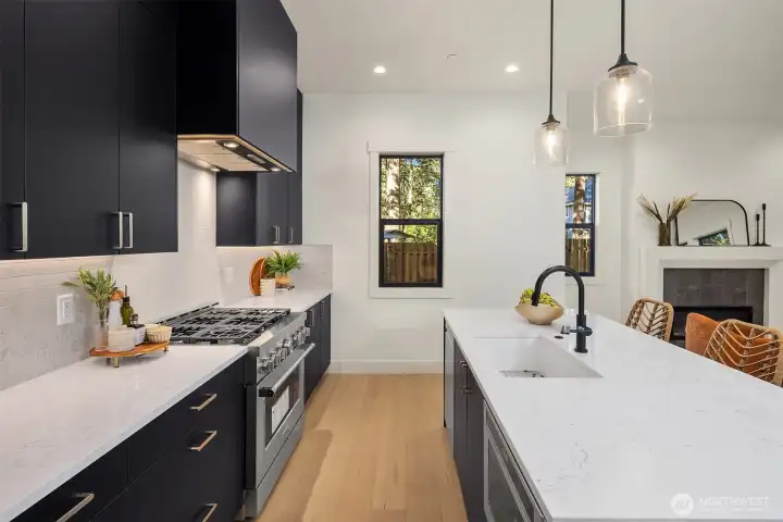 Welcome to this fantastic new construction home in the Robinswood neighborhood of Bellevue. Main level features large entryway with built-in storage bench and convenient powder room - perfect for guests. Open layout and a well-appointed kitchen offering abundant storage, spacious island and designated dining space. Fireplace with custom surround creates cozy & inviting living area. Spacious backyard great for entertaining or pets. Upstairs, find your primary suite with high ceilings, luxurious walk-in shower and dual vanity. Two additional bedrooms and full bath complete the second level. Easy parking with attached two-car garage and large driveway in this picturesque neighborhood. Recreation abounds with Robinswood Park and Tennis Center minutes from your door! Easy commutes with close access to I-90 and 405. Enjoy close proximity to shopping, dining and education with Bellevue College nearby.