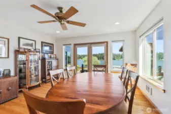 An extraordinary opportunity to own a true waterfront retreat! This beautifully updated lakefront home offers the perfect balance of modern comfort and peaceful natural surroundings. From the moment you step inside, you’re welcomed by soaring vaulted ceilings, expansive windows, and an abundance of natural light that highlights the home’s open, airy design. Rich hardwood flooring flows seamlessly throughout the main living areas, creating a warm and sophisticated atmosphere ideal for both everyday living and entertaining. The open-concept layout connects the spacious living room, dining area, and kitchen, making it easy to host gatherings while enjoying stunning lake views from nearly every angle. The kitchen offers generous counter space and storage, perfectly positioned to be the heart of the home. Retreat to the impressive primary suite, where you’ll find private access to your own deck overlooking the water—an ideal setting for peaceful mornings with coffee or relaxing evenings watching the sunset reflect off the lake. Your private dock invites endless opportunities for boating, paddleboarding, fishing, or simply soaking in the tranquil surroundings. Whether you’re entertaining friends, enjoying life, or savoring quiet moments alone, this property delivers a lifestyle many only dream of. If you’ve been waiting for a rare lakefront property that truly has it all—views, updates, space, and serenity—THIS IS YOUR CHANCE