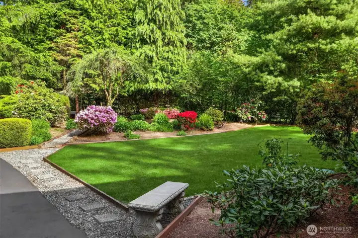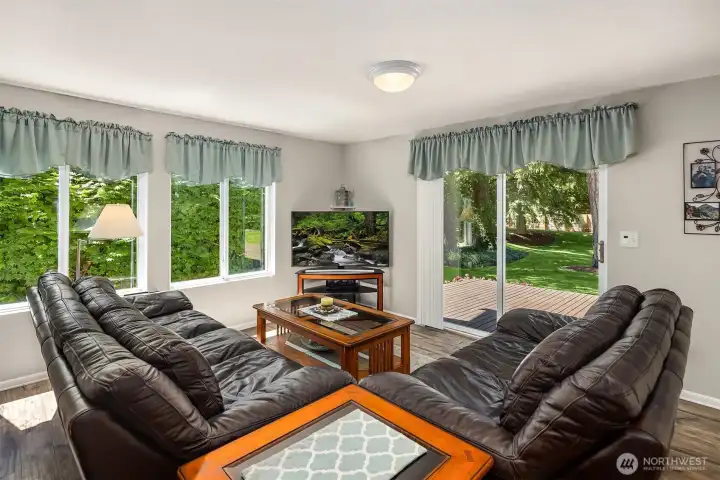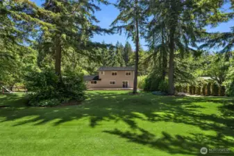 Privately nestled on a shy acre oasis in desirable Winterwood Estates, this move-in ready 2-story stunner surrounded in PNW grandeur feels like your own majestic park! Gorgeous curb appeal with long drive, manicured gardens & sweeping covered porch. Meticulously maintained & move-in ready with modern updates throughout. Spacious sunken living room with cathedral ceilings, tall windows & towering gas fireplace. Formal dining with buffet nook & pocket doors. White kitchen with quartz counters opens to family room with slider to sprawling entertainment deck. Generous primary suite, ample closet space & stunning upscale baths. Massive dream backyard with playground & covered RV/boat parking. Affordable luxury with brand new roof, newer furnace & central A/C!