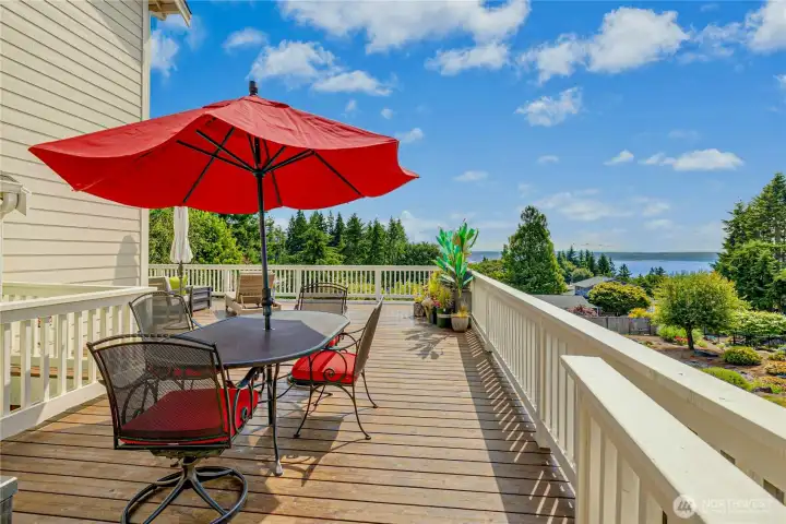 Experience ICONIC SOUND VIEWS & LUXURY LIVING. Perched in Kingston’s premier Skyline neighborhood, this brilliantly remodeled home offers a rare duet of tranquility and seamless city access via the Seattle Fast Ferry. Capture the essence of the Pacific Northwest with panoramic water and Cascade views from most windows, plus Mt. Rainier and the Space Needle. ~THE HEART OF THE HOME: A chef’s kitchen redesigned for entertaining, featuring new quartz countertops, stainless appliances, soft close cabinets and a massive walk-in pantry. The open layout flows naturally into versatile gathering spaces, all framed by stunning everchanging vistas. ~RETREAT & RECHARGE: Revel in sunrises from your serene primary suite, complete with a spa-inspired bath and large walk-in closet. 2 additional bedrooms, an office and a full bath complete the upper level. ~VERSATILE LOWER LEVEL: The walk-out basement features a huge bedroom with a walk-in closet, an updated full bath and two bonus spaces; perfect for multi-generational living, a high-end home office, or a professional gym and studio - all with scenic views. ~OUTDOOR OASIS: Enjoy the 900sf wrapped deck, an all-day destination to watch passing ships or unwind in the hot tub. Set on a lush, fully-fenced half-acre with mature landscaping, you'll also appreciate the new roof, central vacuum, no HOA, and being just minutes to both ferries, beaches, and golf at Whitehorse. This isn't just a home; it’s a true opportunity for a life well-lived.