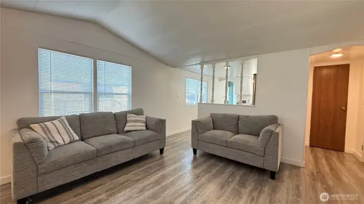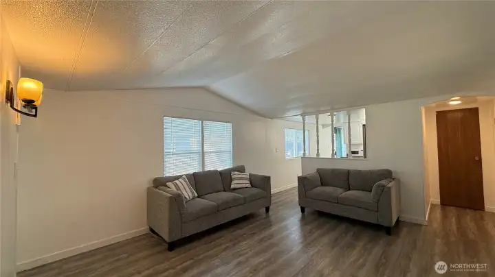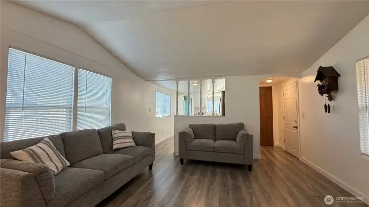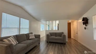 Need Affordable Housing in a nice area? This 2-bedroom home is located in Leisure Manor Mobile Home Park, now an all-age park! The front entrance has a nice ramp for easy access and totally covered for unloading groceries. This home was updated just a couple years ago, new roof, a cheerful kitchen with newer stainless alliances and new windows and flooring. The inside has new paint and to keep you warm in the winter and cool in the summer you'll love sitting in the cozy living room with the new Mini split heat pump. Includes full bath and 2 bedrooms, the primary has access to the main bathroom, the large dining room that could be another primary bedroom with a patio door if you need more room, making the smaller bedroom into an office/den. The front entrance has a new deck and all enclosed area for enjoying the open space outside. So many options for the price! MOVE IN READY! MOTIVATED SELLER!