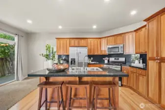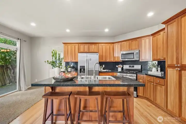 Exceptionally designed and impeccably maintained, this beautiful home shows like new with fresh interior paint and brand-new carpet throughout. Offering a highly functional floor plan with 5 bedrooms plus a dedicated media room, this home provides flexibility for today’s lifestyle—ideal for remote work, guests, or with main floor bedroom. The spacious family room is anchored by a stunning craftsman-style stone fireplace, creating a warm and inviting space for everyday living and entertaining. Enjoy modern conveniences including a whole-home sound system with surround sound, integrated video cabling, and network wiring—perfect for entertainment, gaming, or home office needs. Central A/C ensures year-round comfort. The oversized 2-car garage features a built-in workshop, abundant storage, and a discreet bonus area offering additional flexible use. The bonus secure storage is valued at six figures! Step outside to a peaceful backyard retreat featuring a serene koi pond and patio, ideal for relaxing or entertaining outdoors. Located in the desirable D.R. Horton Savana Community, this home is within walking distance to award-winning Kentwood High School and close to parks, shopping, and commuter routes. A rare combination of space, upgrades, location, and move-in-ready condition—this home truly has it all.