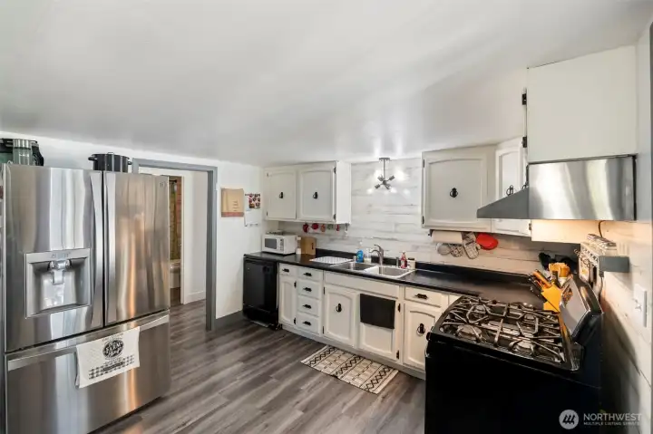 Charming & move-in ready in a peaceful Toledo setting... This 3-bedroom, 1-bath home offers 1,224 sq ft on just shy of 1 acre with easy care laminate flooring and fresh interior paint throughout. Brand new 30 year roof with transferable warranty! Buyer to choose color and seller is have it installed prior to closing! Tastefully updated and open floor plan all on one level. Enjoy gorgeous territorial scenery from the covered deck, the perfect place to unwind and take in the quiet surroundings. An extended breezeway leads to the garage for added convenience. Ample storage includes multiple outbuildings plus a newer 40x22 metal-shop. When fall and winter arrive, cozy up to the warmth of the wood-burning stove. Enjoy the tranquility of country living while remaining just minutes to town amenities and easy I-5 access. High-speed internet available through ToledoTel. A wonderful opportunity to add your personal touches and make this peaceful retreat your own!
