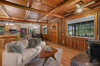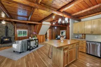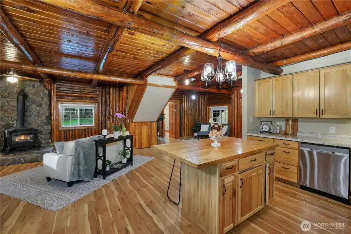 Tucked among the evergreens of Olalla, this distinctive log home sits on 2.55 private acres, offering character, warmth, and seclusion rarely found today. A welcoming covered front porch opens to inviting wood interiors showcasing timeless craftsmanship and a true Pacific Northwest feel. The refreshed open concept living space w/wood stove offers a cozy retreat feel, perfect for relaxing on cooler nights, while the updated kitchen blends rustic charm w/modern convenience for everyday living & entertaining. Large windows frame peaceful views of the surrounding landscape, allowing natural light to pour in and creating a seamless connection to the outdoors. A durable metal roof enhances longevity & low maintenance appeal while complementing the home’s classic log design. Outside, the acreage functions beautifully as a mini farm w/open pasture suited for animals, gardening, or hobby farming w/Fruit Trees. Multiple outdoor entertaining areas including two fire pit spaces create perfect settings for hosting guests or quiet evenings. The detached shop/garage offers flexible space for projects, storage, or recreational gear, while extensive uncovered parking provides room for RVs, boats, trailers, and additional vehicles. This one of a kind Olalla property delivers a peaceful retreat lifestyle w/easy access to nearby amenities, ferries, and commuter routes, offering privacy, versatility, and timeless Northwest living for those seeking something special beyond a cookie cutter home.