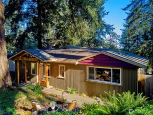 Rustic modern home in peaceful and forested setting. Lovingly cared for, with many custom features and recent updates. Fir wood trim throughout and hickory hardwood wide plank floors. Entertain with 6 burner Viking gas range, electric convection oven, dining room, deck, and patio. 2 separate bedroom and bathroom areas, plus 2 extra finished rooms/bedroom/den/office with with outside entrances. Multiple storage areas. Workshop for crafting. Gardener’s delight 11,000+ sq feet terraced and professionally landscaped yard, with raised beds. Convenient access to shopping. Sports fields, playgrounds, parks, Burke Gilman and Interurban trails nearby. Multiple arterials, freeway, light rail, and bus minutes away. Shoreline School District.