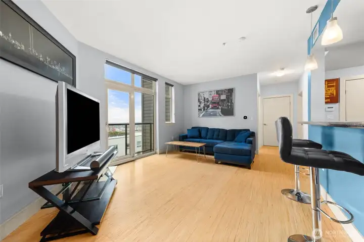 Panoramic views from primary & partial views in living room, steal the show in this stunning 1 bedroom + den (or guest space), at The Reverie at Marcato. With 900 sq ft, this light-filled home offers an open layout designed for both comfort and style, featuring bamboo flooring, granite counters, stainless steel appliances, and wood cabinetry. The versatile den makes an ideal home office or guest space, while expansive windows and a private balcony capture sweeping territorial, city, and mountain views. Enjoy the ease of secure parking, storage, and premium building amenities including a fitness center, private theater, clubhouse, and BBQ courtyard. All appliances stay to include washer/dryer. Dedicated parking space in secured garage & private storage space. Perfectly positioned in downtown Tacoma, just minutes to light rail, I-5, waterfront, dining, and major employers. Urban living at its finest!