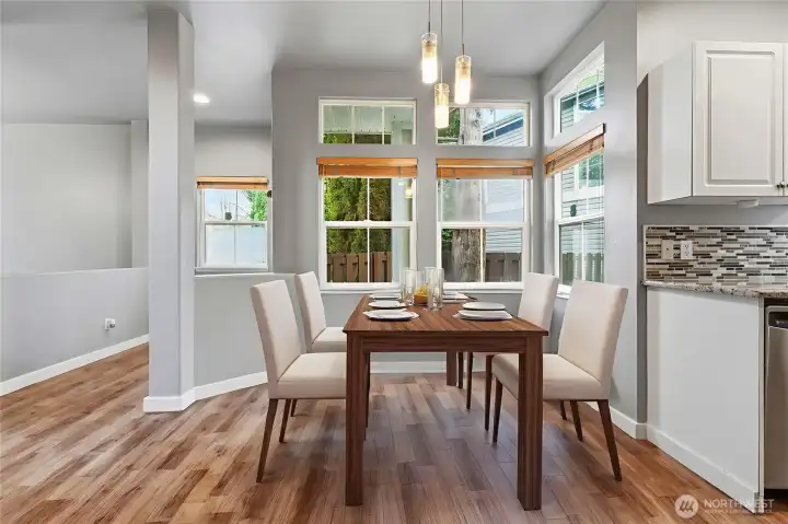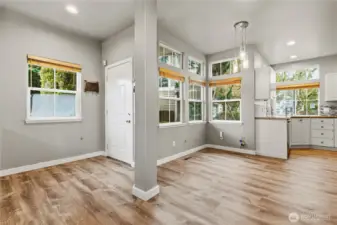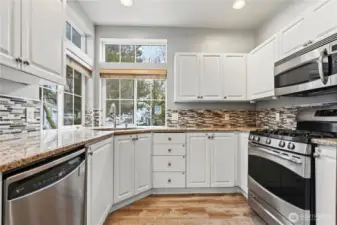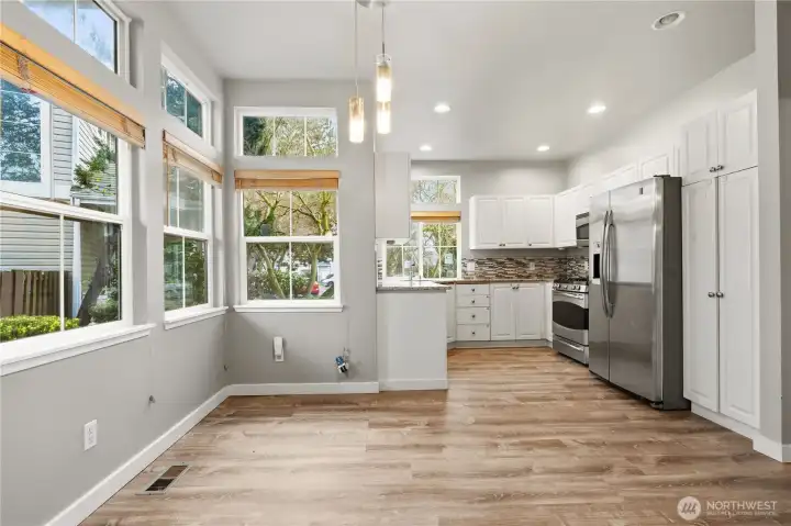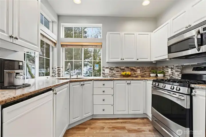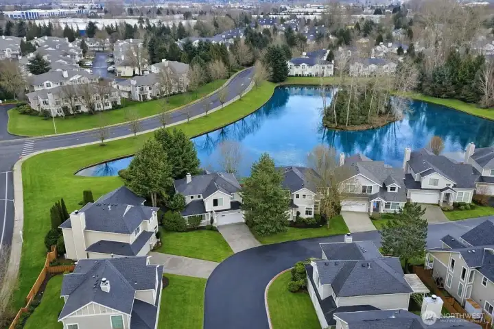 Experience refined living in this elegant 3-bedroom, 2.5-bath detached home in the heart of Kent. Situated on a spacious corner lot within a safe, private community, this residence showcases soaring ceilings and an open-concept design bathed in natural light. The gourmet kitchen flows seamlessly into the inviting living space—perfect for elevated entertaining. Upstairs, generously sized bedrooms offer comfort and versatility within a thoughtfully designed floor plan. Step outside to a large backyard ideal for gatherings, unwind on your private Trex deck overlooking the lake, and stay cool all summer with A/C. Complete with a two-car attached garage and a well-managed HOA with low dues covering lawn and tree maintenance, this home offers effortless luxury living just minutes from highways, shopping, and dining.