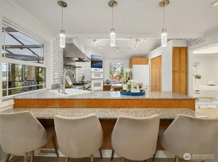 Live beautifully in Southeast Bellevue’s coveted 41.5 community, where lake views, privacy, and timeless craftsmanship create an exceptional everyday experience. This updated 3-bedroom, 2.25-bath Craftsman home blends warmth and elegance with a setting designed to inspire. Wake each morning to soft sunrise light over the Lake Sammamish, visible from your living room and kitchen, and enjoyed from the extended covered deck—perfect for year-round relaxation or intimate gatherings, with the option to enclose for added comfort and privacy. Inside, the flowing main level invites connection, offering both formal and casual living spaces that transition seamlessly into the dining area and gourmet kitchen, complete with granite countertops, designer range hood, and abundant cabinetry. New flooring and plush carpet provide a fresh, move-in ready feel. Upstairs, two generously sized bedrooms each enjoy private baths, including a serene primary suite with a spa-like five-piece ensuite designed for unwinding at day’s end. A flexible bonus room offers space for a private office, media lounge, or retreat. Mature landscaping, blooming seasonal color, and a tranquil water feature enhance the peaceful frontyard and backyard setting. Just minutes to beach parks, premier shopping and dining, top-rated schools, and major tech campuses, this is refined Pacific Northwest living at its finest.